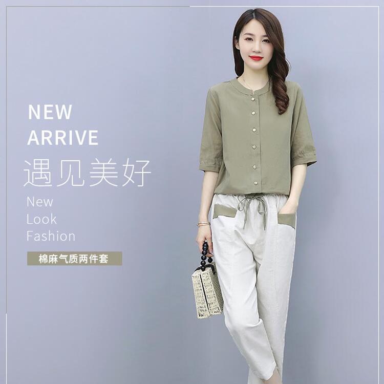 5分钟前休闲裤女棉麻女装套装女2021夏季新款优雅洋气时尚气质修身小个子亚麻两件套